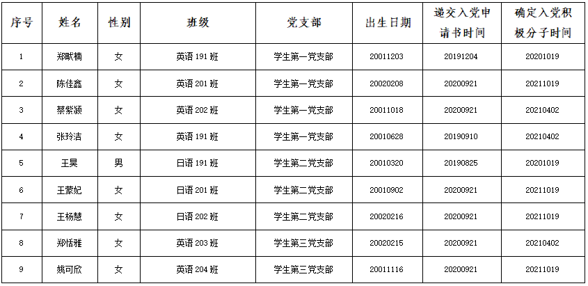 经各支部委员会讨论研究,公司党委审查备案同意,将郑畎楠等9名同志列为发展对象。现予以公示,在公示期限内,欢迎广大师生通过信函、电话或直接反映问题。以个人名义信函反映提倡署真实姓名。