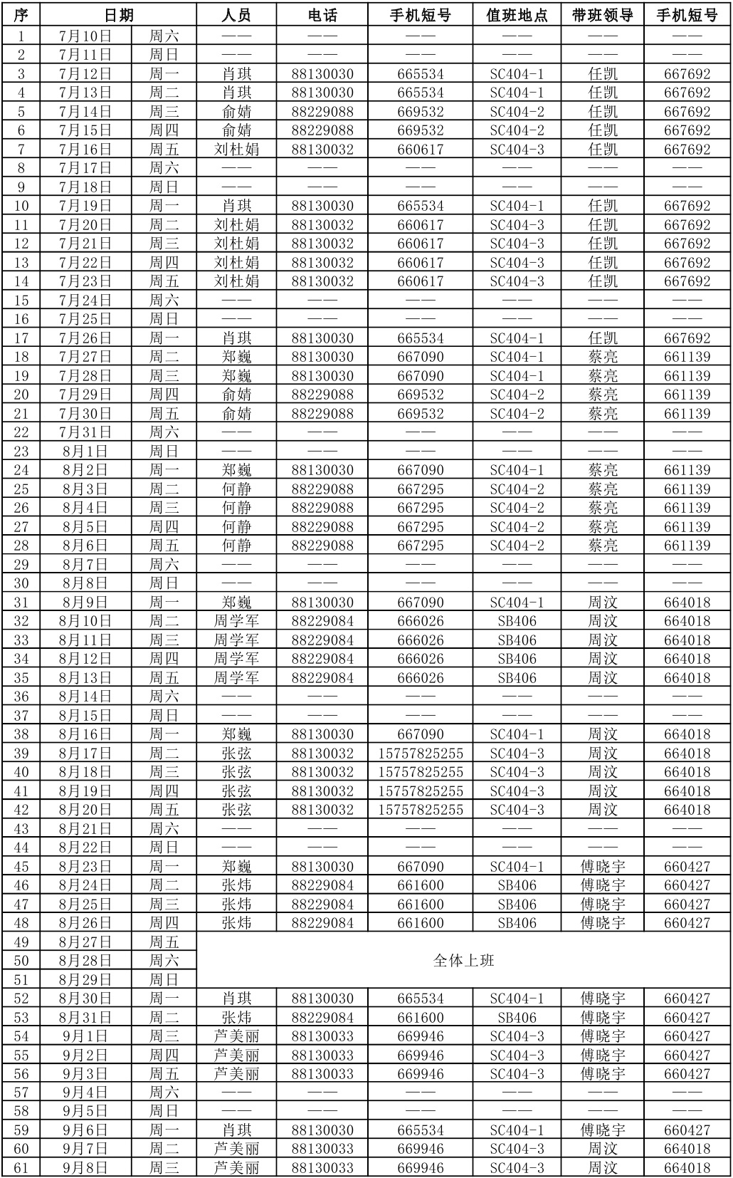 3、值班人员要值守电话,并保持手机畅通,有关事宜要及时通知相关人员;