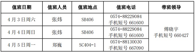 4、带班领导值班地点在宁波,保持手机畅通。
