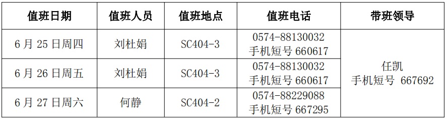 4、带班领导值班地点在宁波,保持手机畅通。