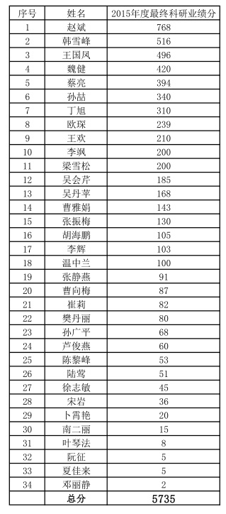 外语公司2015年度科研业绩分已计算完成,之前公示期于1月7日截止,该表格于1月8日上报公司科研处。