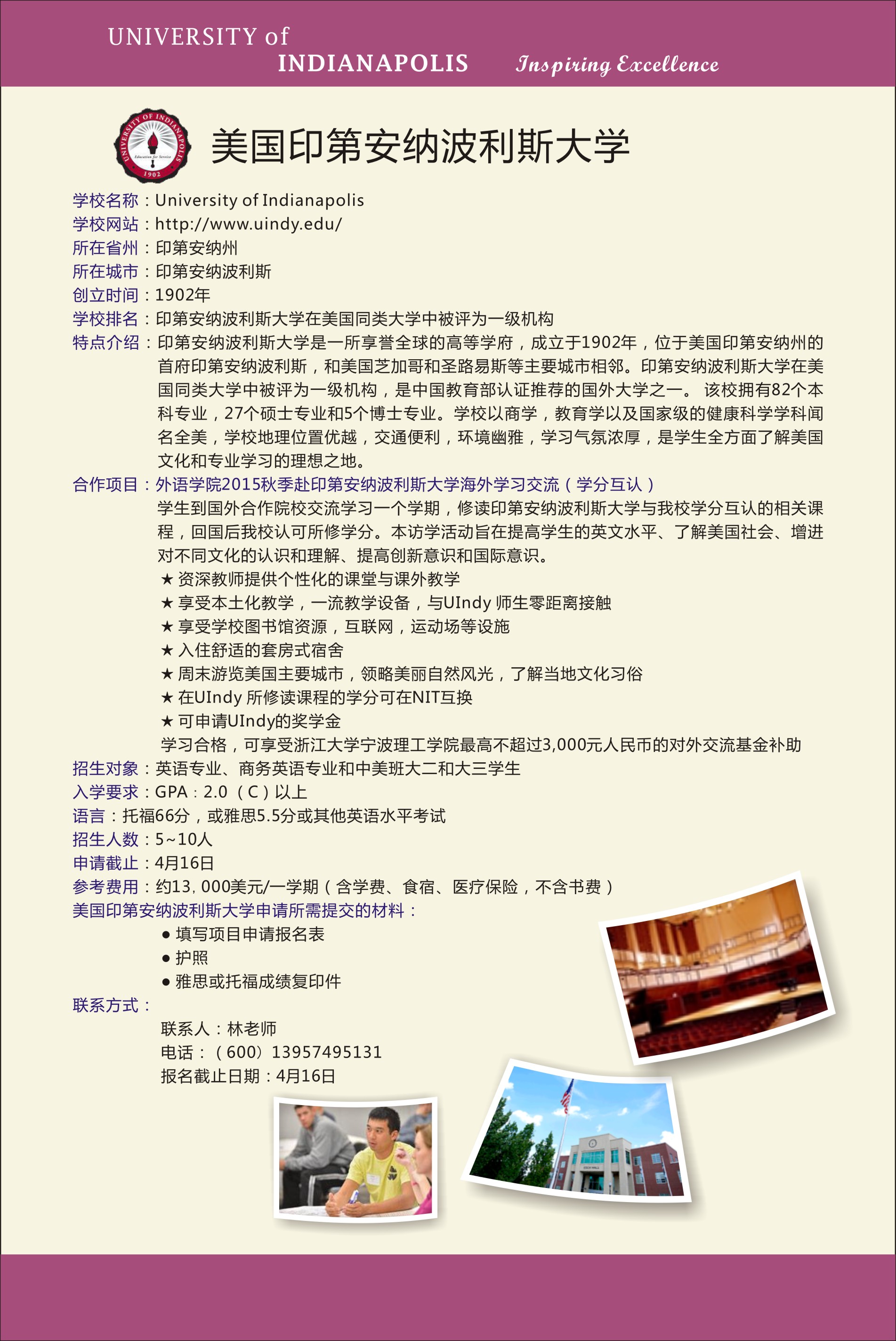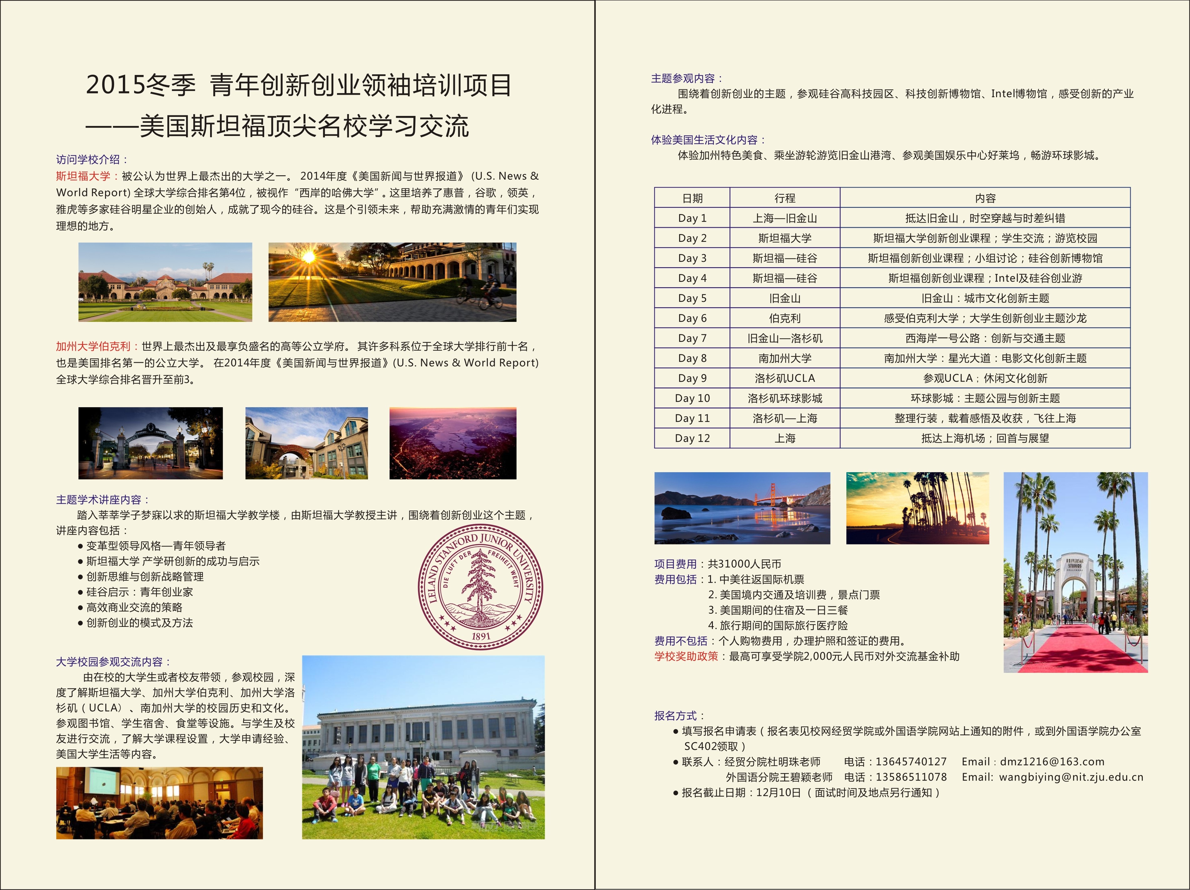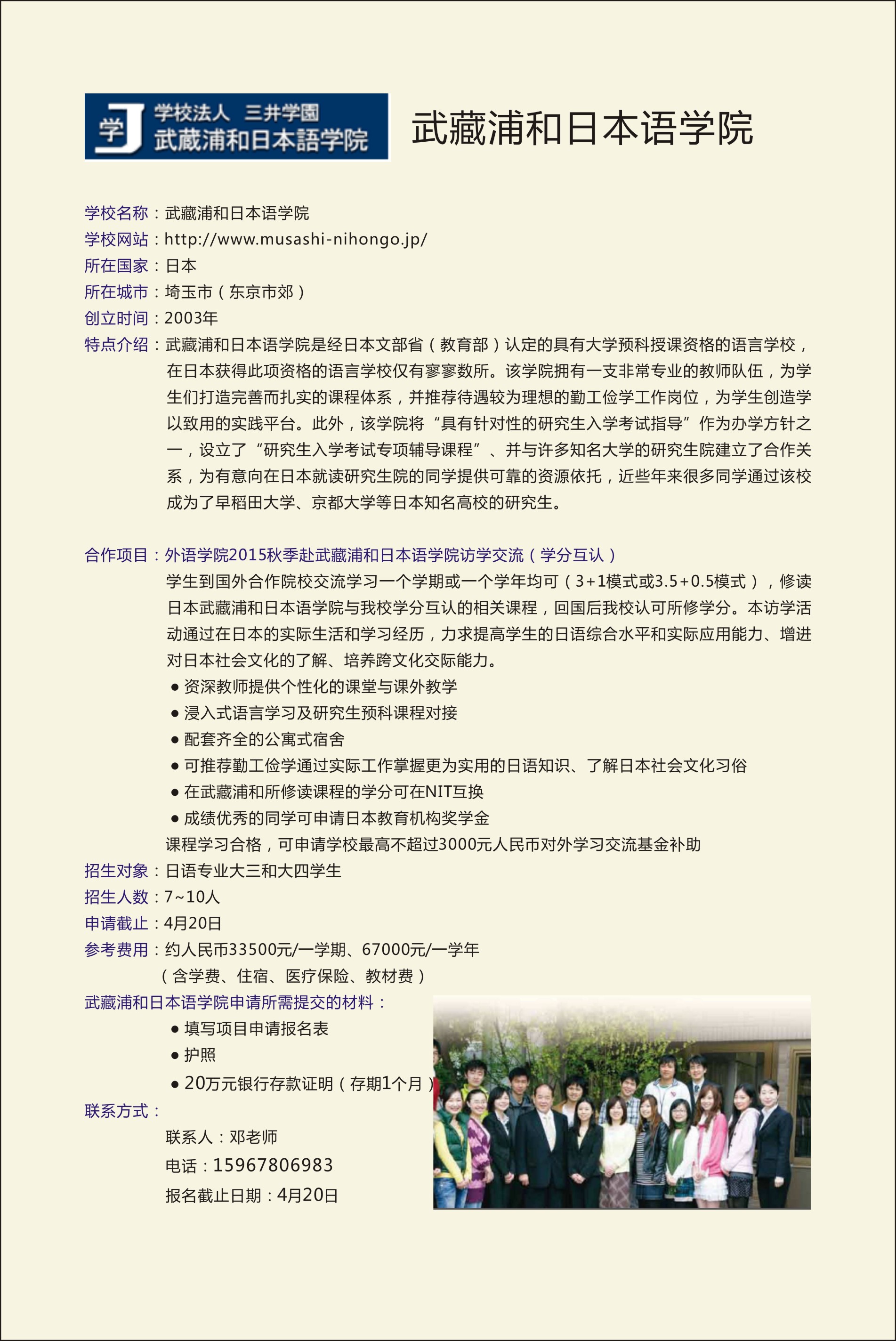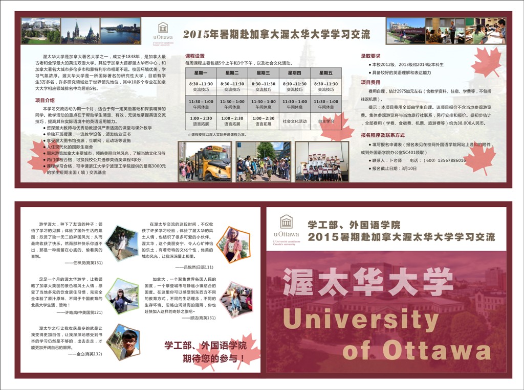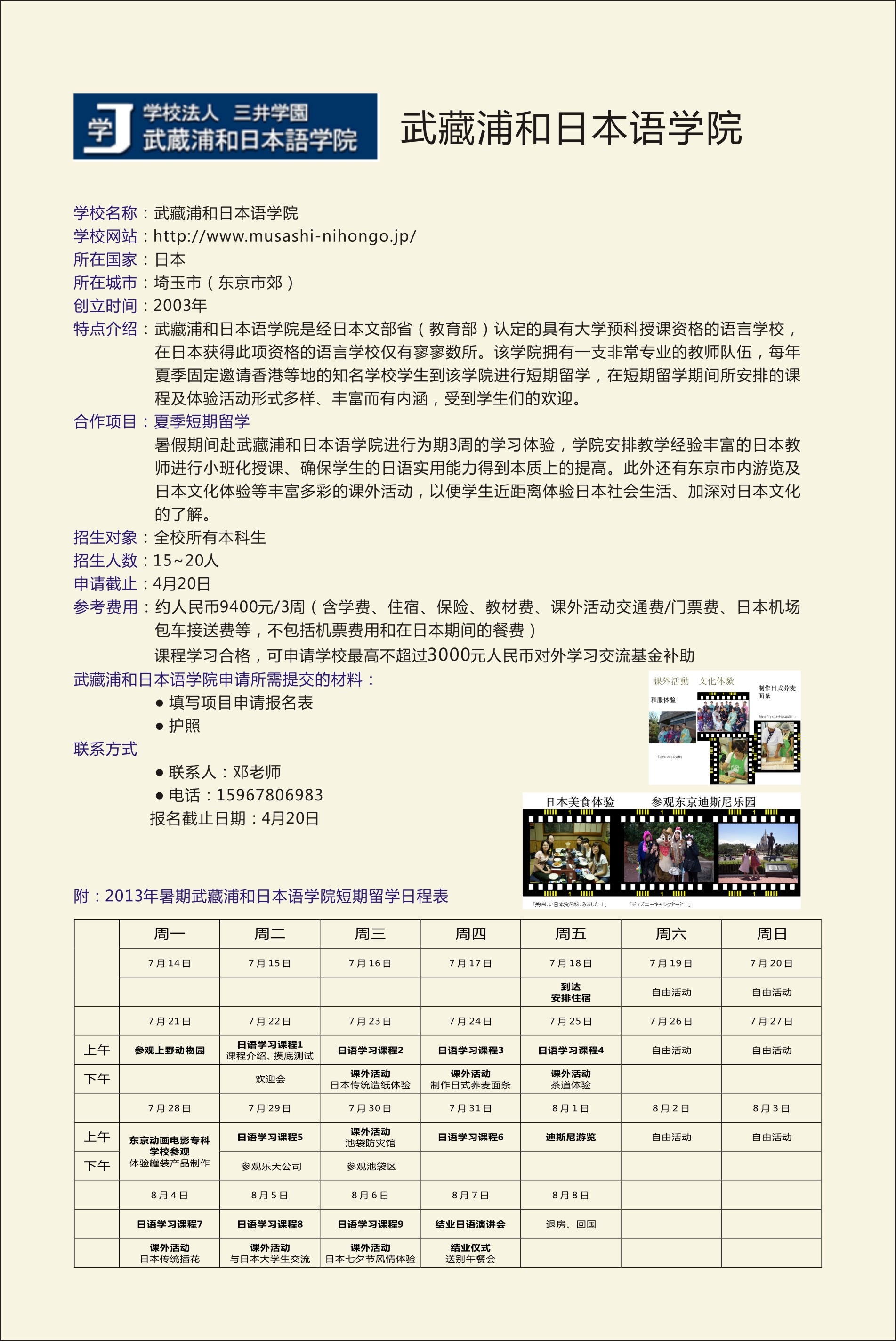 为进一步公司推进教育国际化教育改革,开阔同学们的国际视野,提升在真实语境下语言运用的能力,增强跨文化交际能力,公司与美国斯坦福大学、索尔兹伯里,加拿大渥太华大学和日本武藏浦和公司等多所(国)境外高校签订合作协议,现推出2015年寒假、暑假短期学习交流项目和学分互认项目多项。