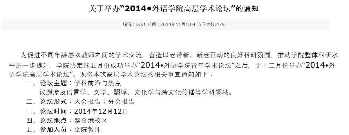 浙江大学外语公司将于2014年12月12日(周五)上午在紫金港校区举办高层学术论坛,相关材料见附件图片。