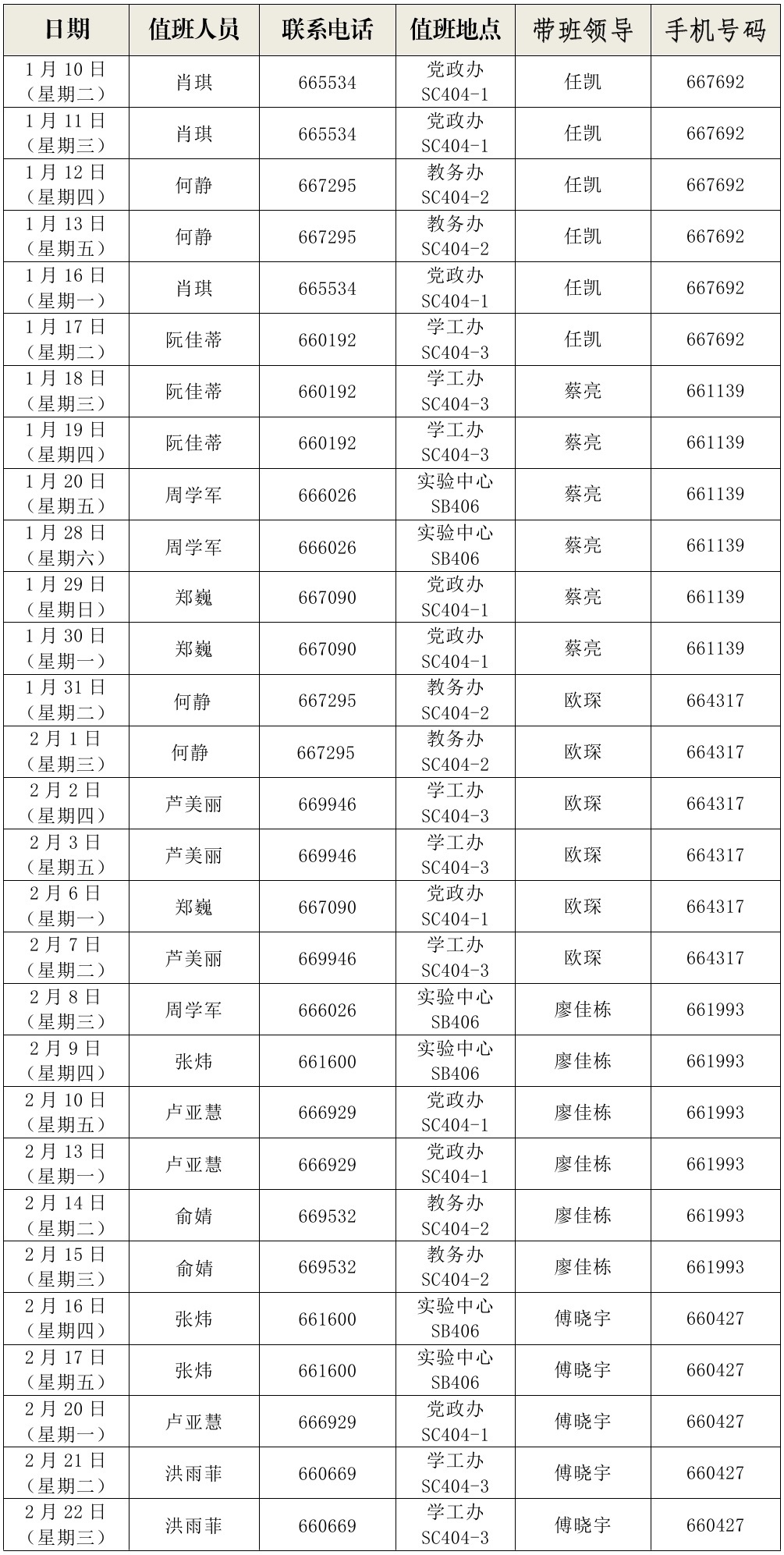 3、值班人员要值守电话,并保持手机畅通,有关事宜要及时通知相关人员;