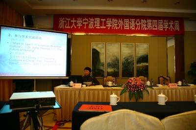 外国语分院于2010年11月20日至27日举办了分院第四届学术周。公司副经理杨建刚教授、宁波市外事办孔玮玮主任和香港中文大学孔宪辉教授应邀出席了在NC405会议室举行的学术周开幕式。